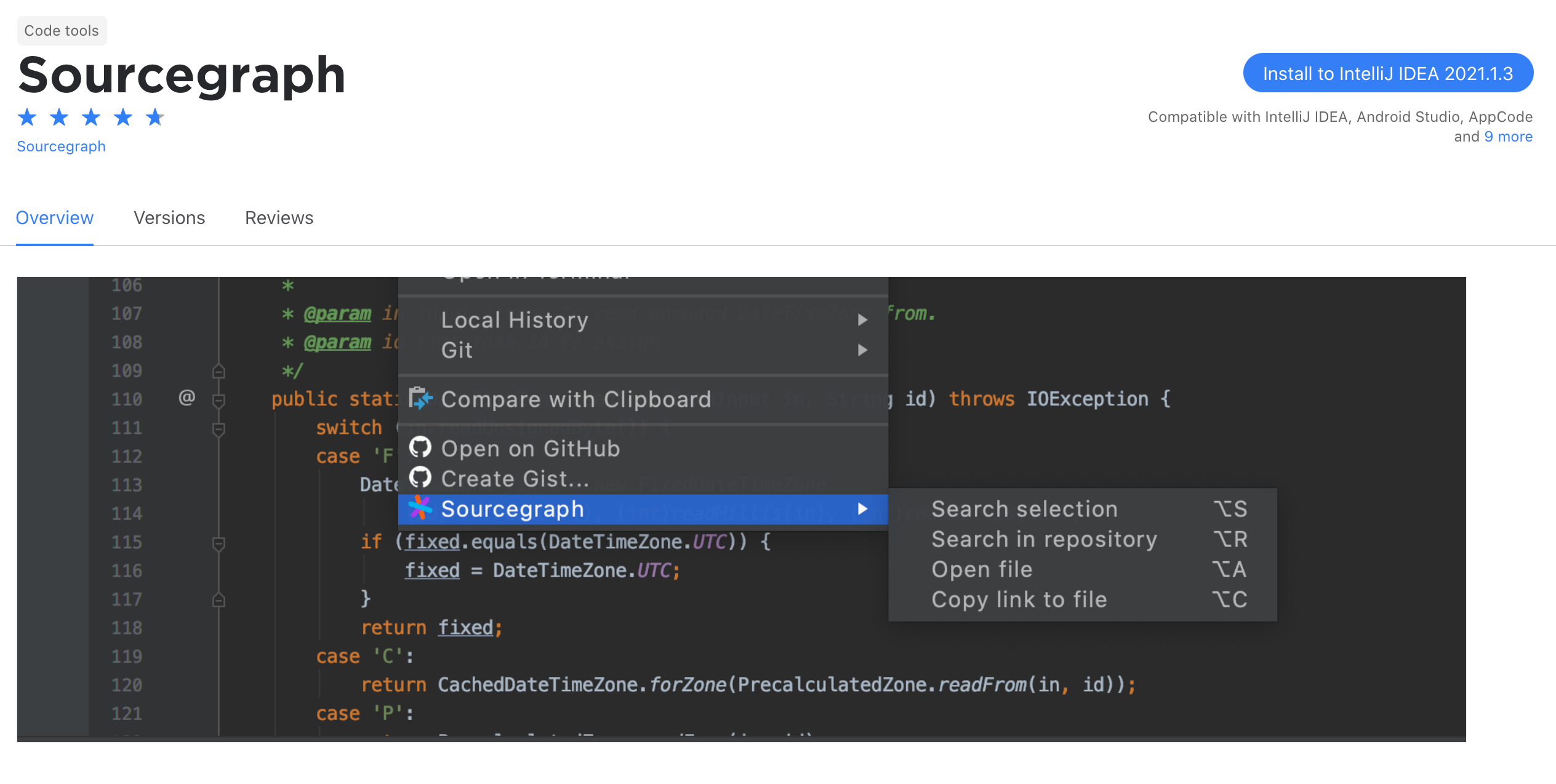 sourcegraph의 기능이 플러그인 형태로 제공되고 있다는 것!